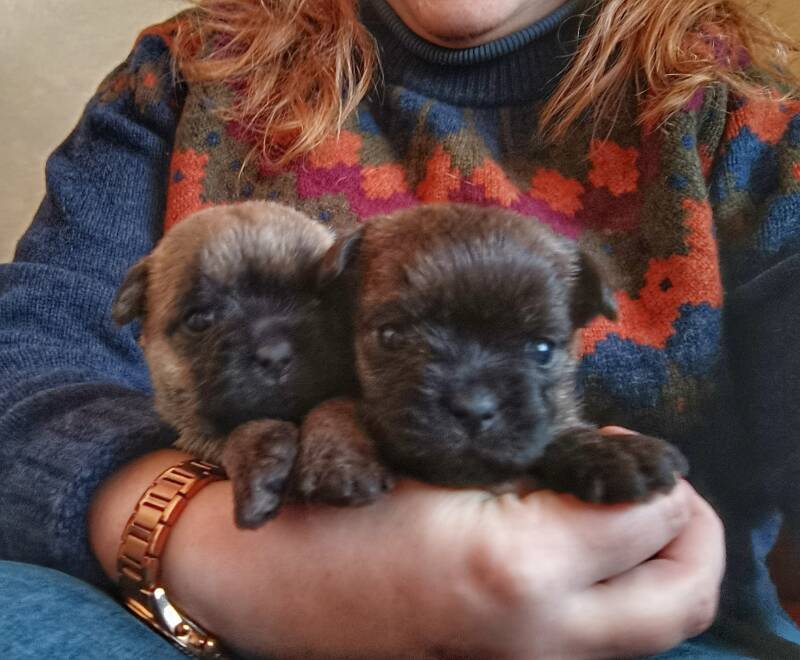 The puppies are 4 weeks old. They will already get their 2nd deworming in the weekend. The 2 dark brindle boys and the wheaten boy are still open for reservation ☺️